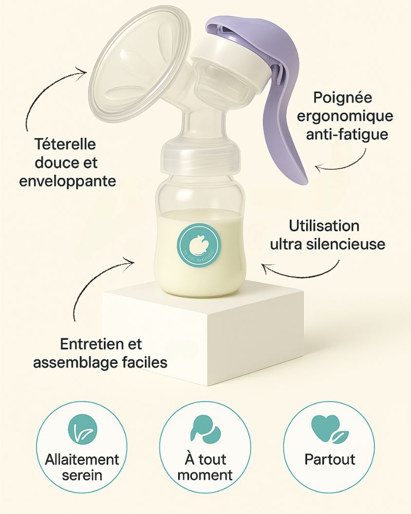 Placez la téterelle, pressez doucement la poignée… et laissez le lait venir, sans stress.